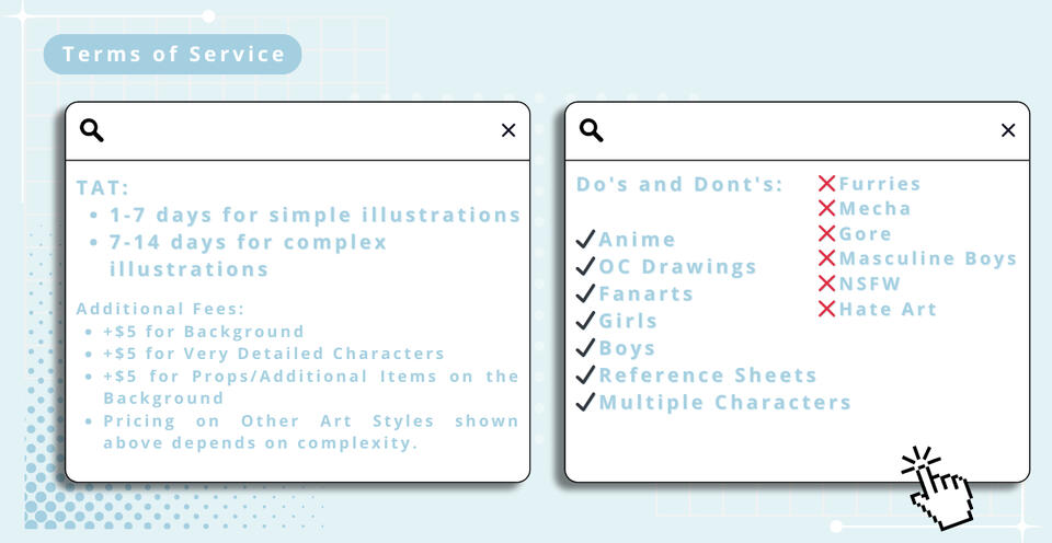1. How to request for Art Commissions?Kindly message me on ANY of my Social Media Accounts for Consultation. (I am most active on Twitter)